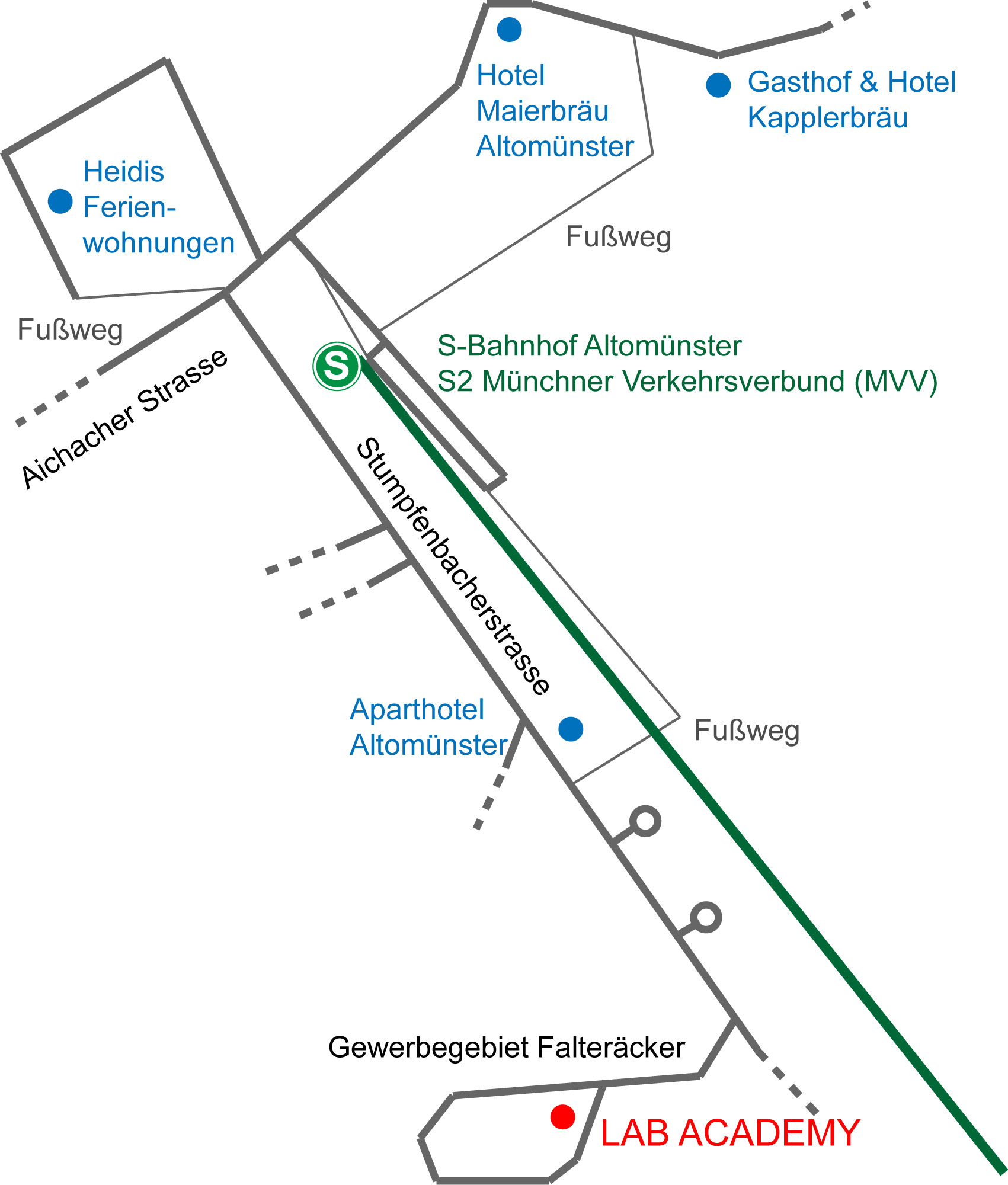 Bei Bedarf sind noch zahlreiche weitere Adressen in verschiedenen Kategorien in der Umgebung unseres Schulungszentrums verfügbar. Gerne sind wir Ihnen bei der Buchung einer Unterkunft und der Organisation Ihrer Anreise behilflich.